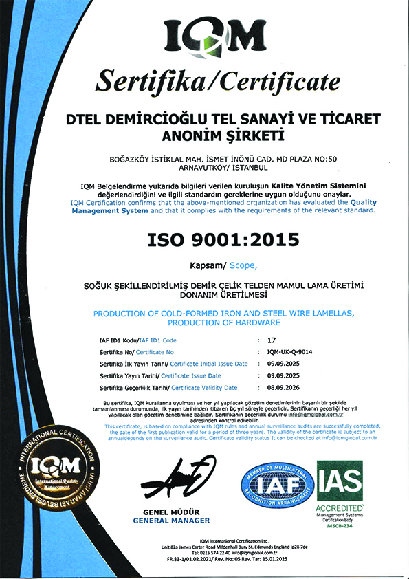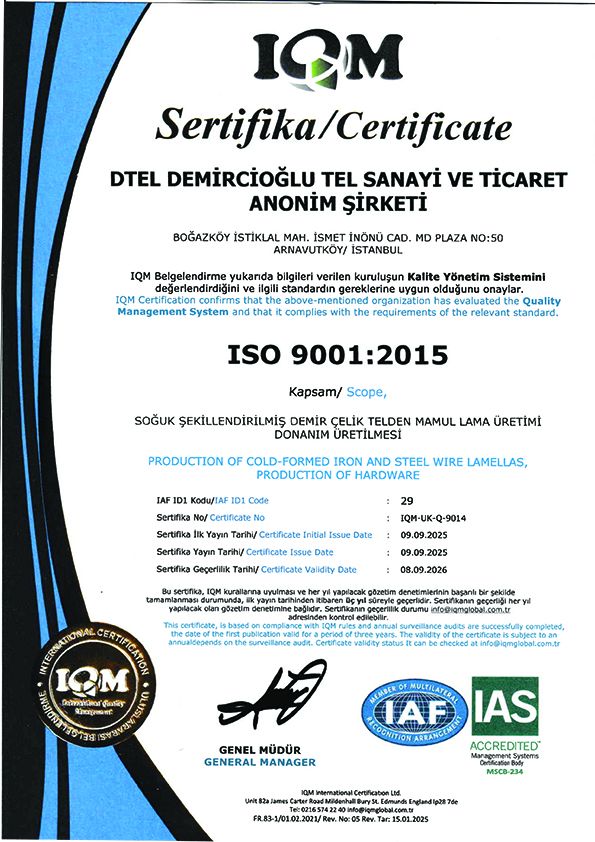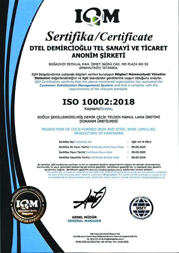 DTEL, which always has the customer satisfaction in focus, has a quality management system which is established according to ISO 9001 – 2008 Quality Management Standards and applied with care. The technical property values of the products according to their own quality classes are tested and determined in our laboratory. These results are presented to our customers in the Quality Certificate.